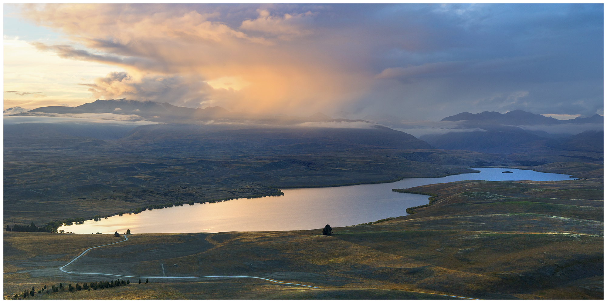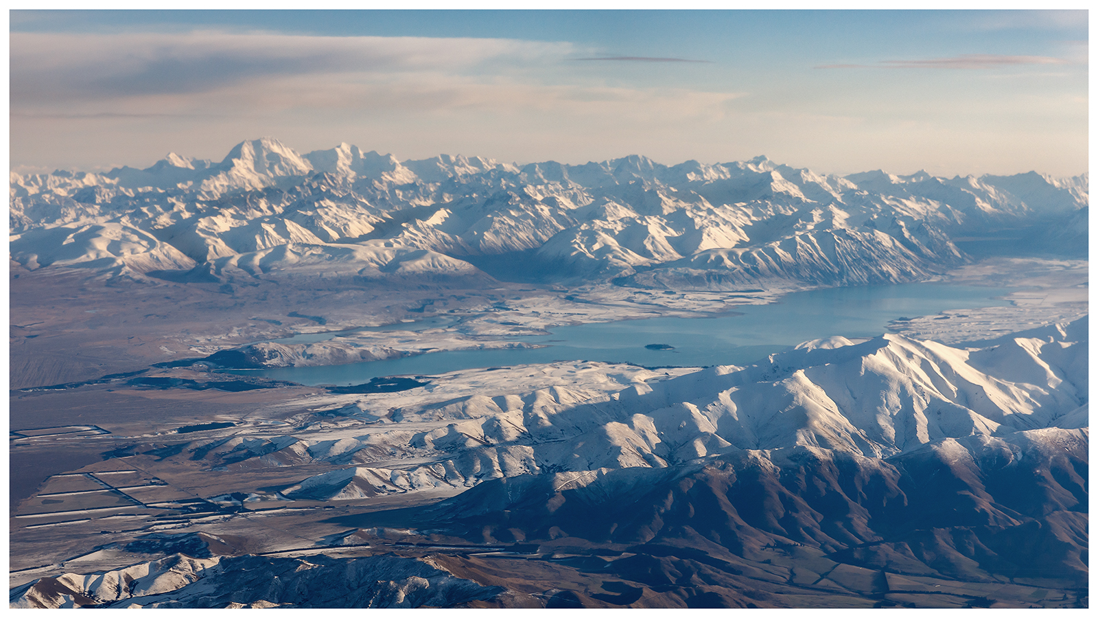 Lake Tekapo, located in the Mackenzie Basin, is the second largest of three lakes running north–south along the northern edge of the Mackenzie Basin in New Zealand’s South Island. The lake is fed at its northern end by the braided Godley River, and the Macauley River, which flows into the lake from the east. The Southern Alps rise dramatically from the lake’s shores, creating a wonderfully snow-capped and rugged backdrop for this idyllic setting.